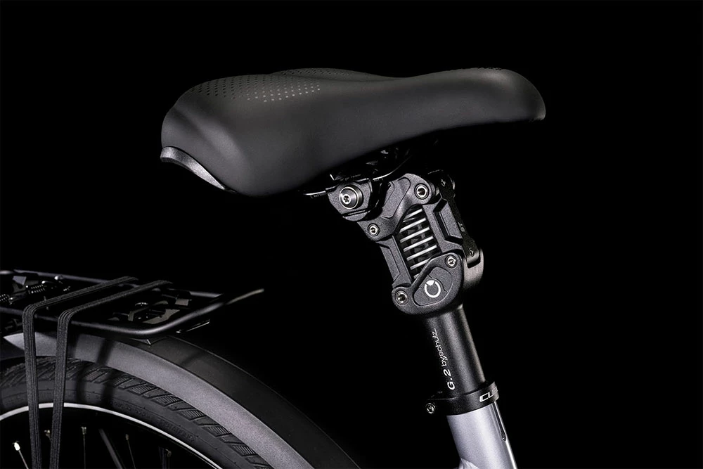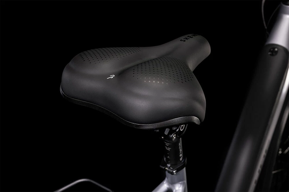 Und beim Bremsen ist auf die leistungsstarken hydraulischen Scheibenbremsen von Shimano und die griffigen Schwalbe Marathon E-Plus Reifen voll Verlass. Klar, dass auch der Komfort nicht zu kurz kommt: Hierfür haben wir dem Bike einen verstellbaren Vorbau, eine Rockshox Paragon Gold Federgabel und eine gefederte Sattelstütze von Byschulz spendiert. Einmal abgestellt, hält der integrierte Seitenständer das Bike aufrecht. Und dank Beleuchtung heißt es zu jeder Tages- und Nachtzeit: Sehen und gesehen werden. Schutzbleche und ein semi-integrierter Gepäckträger vollenden die Ausstattung.