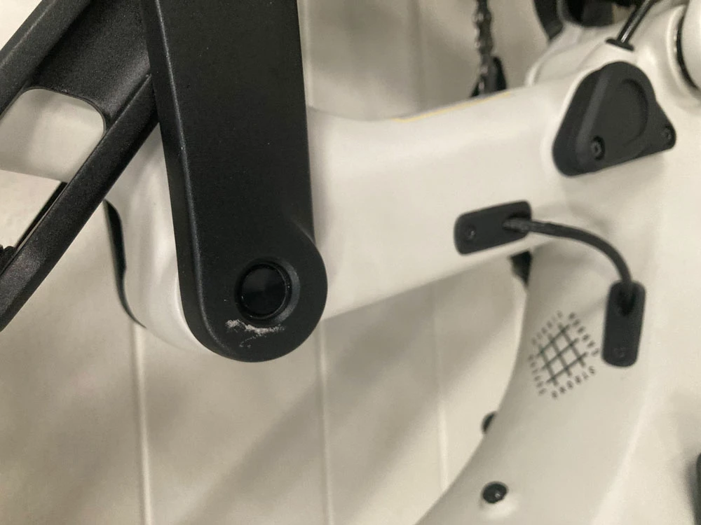 Bei diesem Deft 9.0 750 von Radon handelt es sich um einen Rückläufer. Das E-Bike Fully weist leichte optische Mängel auf, die keinerlei Einfluss auf die Funktion haben und in den Abbildungen 2 (Lackschaden links an der Wippe), 3 (Lackschaden links an der Dämpferschraube) und 4 (Lackschaden am Steuerrohr) wiedergegeben sind.